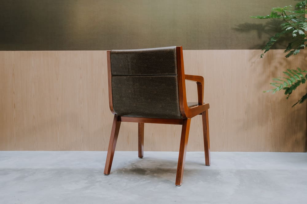 The solid ash timber frame, finished in a rich walnut stain, showcases the wood’s natural grain and warmth—making it a perfect fit for various interior styles in Singapore, from modern minimalist to classic elegance. The ergonomically designed backrest and contoured armrests provide excellent support, ensuring long-lasting comfort whether you’re relaxing or entertaining guests.